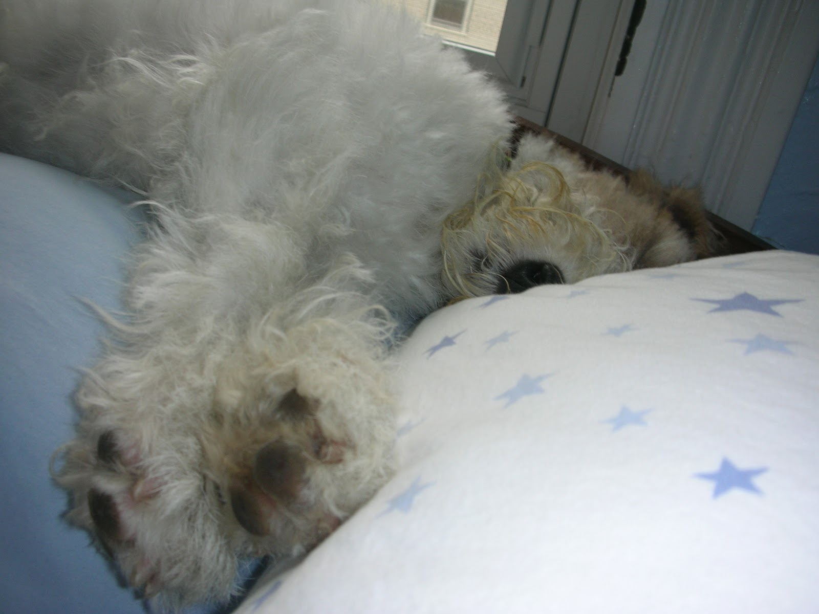 | I wanted to see how sleeping outside of my crate worked while at the same time bringing out my little blanket half way.... |